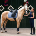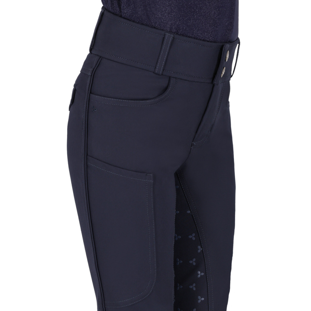 The Aubree breeches feature a high waist and a modern look. The soft, stretchy fabric offers all-season comfort. They come with a medium full seat silicone grip in a printed design. Strass stones and elegant buttons add a stylish finishing touch. The phone pocket on the right leg makes it easy to bring your mobile along.