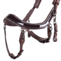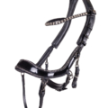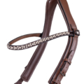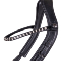 - The bridle is finished with a patent leather noseband with glitter border and has a browband with rhinestones