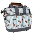 All your grooming supplies can be neatly stored in this luxury grooming bag. Thanks to the detachable shoulder strap and the handles, you can choose whether to carry the bag in your hand or over your shoulder. The bag features multiple compartments to keep your items organized. The top can be closed with a zipper. In addition, the grooming bag has both open and closable pockets on the outside. The bag is finished with the Stable buddy print and corduroy details.