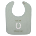 Bib matching the bodysuit Bobby. The bib has the text: ‘Here I am! Where is my pony?’ The bib keeps your baby’s clothes dry.