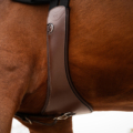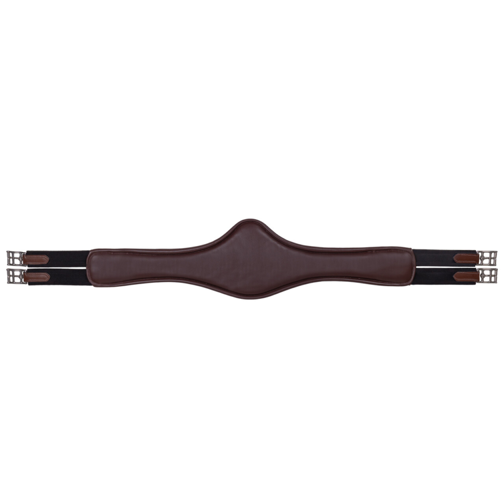 - The elastic of the dressage girth is concealed under the leather, serving as a checkpoint for a snug girth. When the elastic becomes more visible to the rider, there is no need to tighten further; the horse still has enough breathing room.