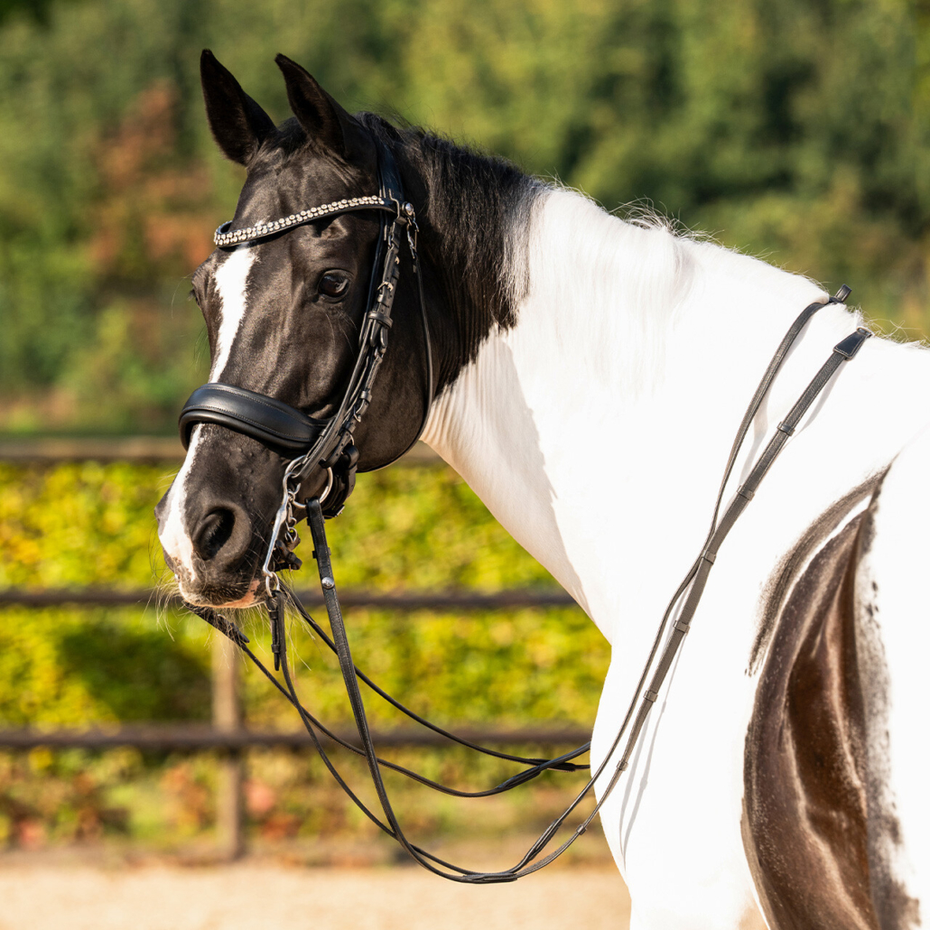 The SparklingStar browband is equipped with silver rhinestones and is finished with patent leather.
