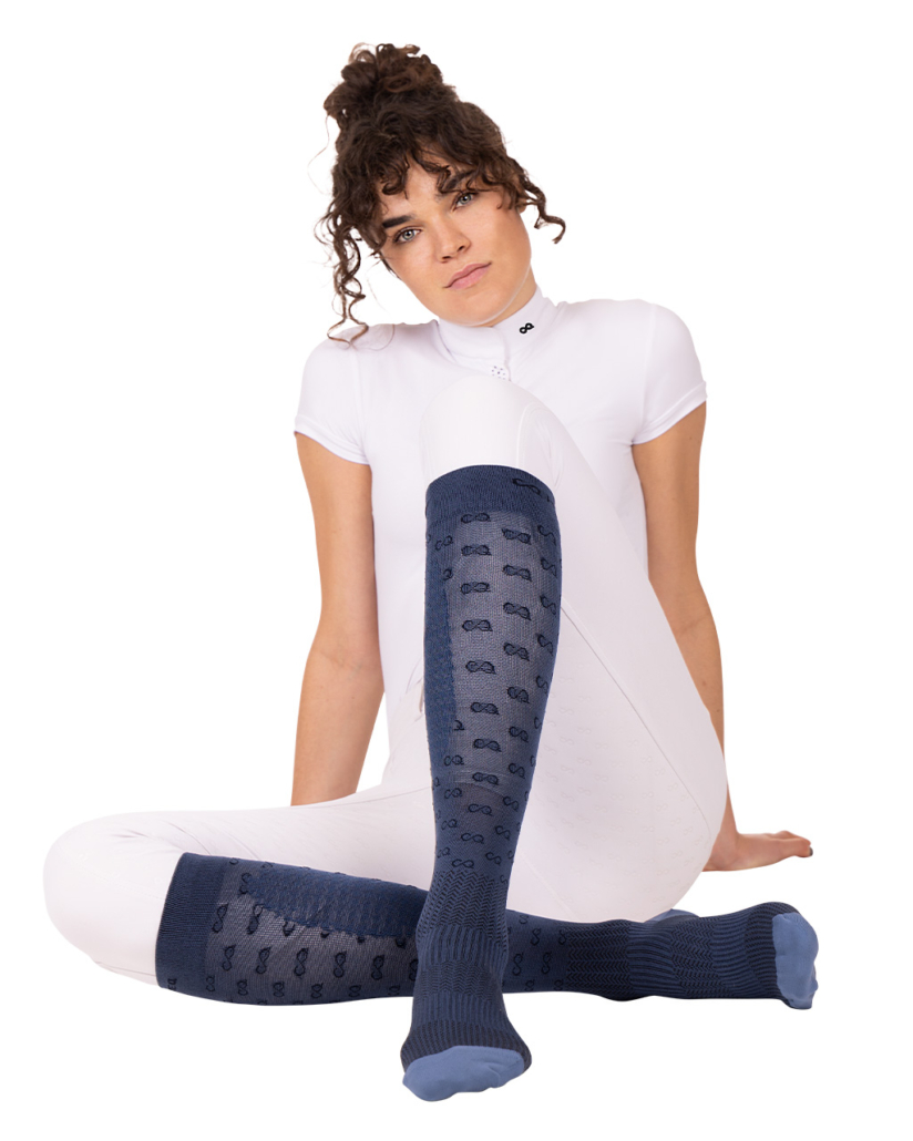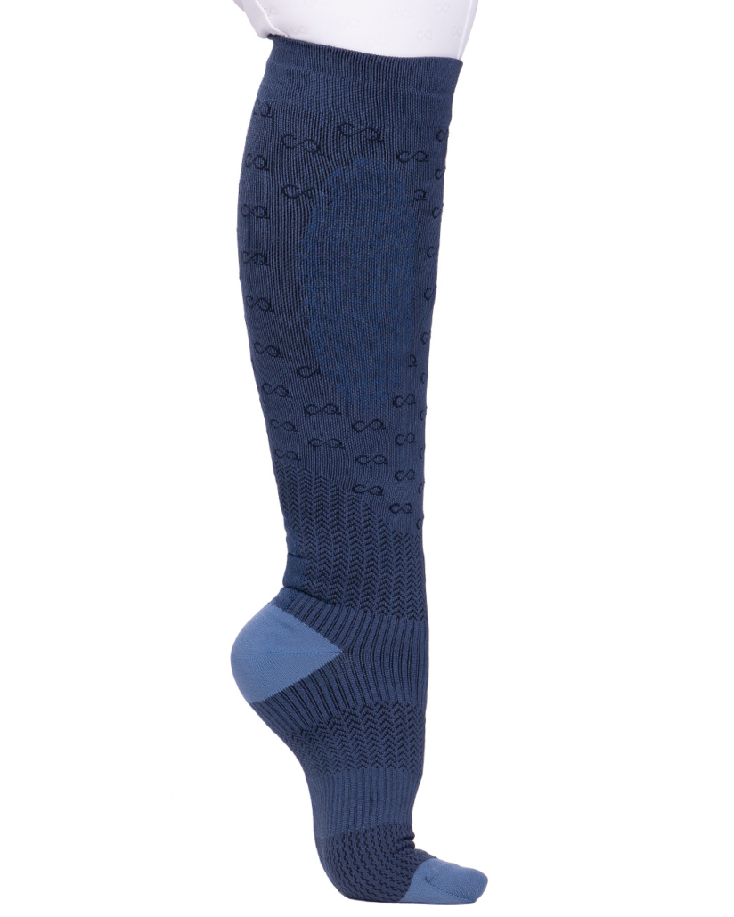 A new era of riding socks has arrived. These CompressTEQ riding socks with medium-low compression ensure that your blood circulation is stimulated and you experience less tired legs after riding. In addition, the socks are very comfortable to wear because of the friction free seams and they give extra strength around the ankle and foot. The socks consist of 49% Dryarn®, this is moisture-wicking and prevents chafing, friction and blisters. Finally, the socks are equipped with anti-shock material at the heel and inside of the calf.