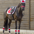 Dress your horse for Christmas with this red saddle pad, lined with imitation fur.