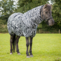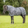 This eczema rug is especially made for Icelandic horses. The rug protects the horse agains insect bites, particularly agains culicoides midges which can cause an allergic reaction and heavy itching for some horses. An eczema rug also protects the horse against sunlight and UV radiation. The fabric of this rug is strong, elastic, breathable and dries quickly.