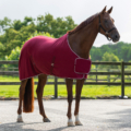 Use a fleece rug after unsaddling a horse to prevent him from cooling down too quickly. This rug features removable surcingles. The frontclosures are covered with a flap fastened by velco. The silver cord and ornament gives the rug a chique appearance.