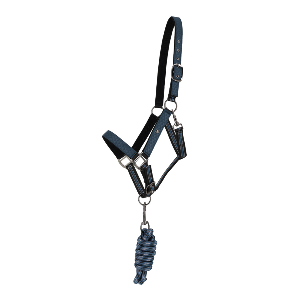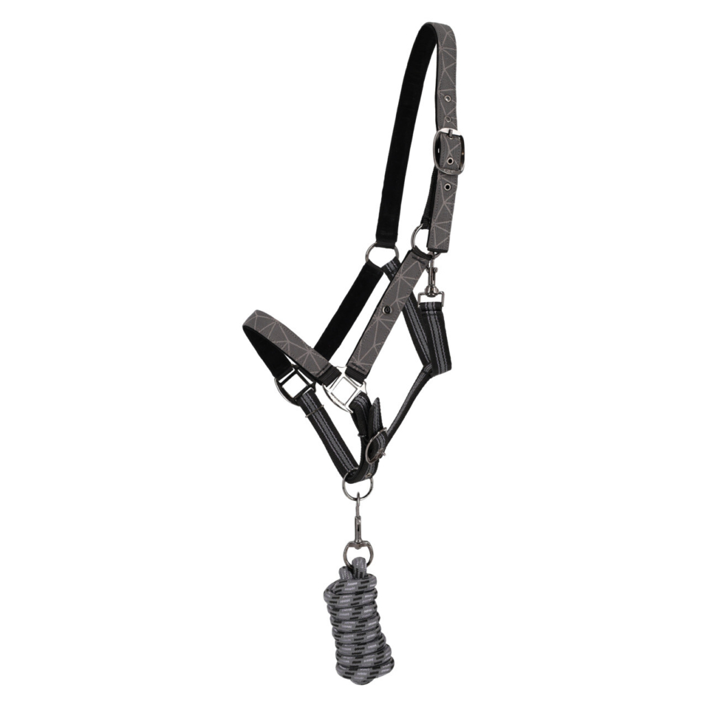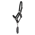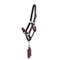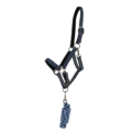 A padded head collar from the winter collection, decorated with beautiful colors. It features luxurious black metal fittings and comes with a matching colored lead rope and a reusable plastic bag with a zipper.
