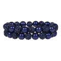 Elastic hair scrunchie with beads threaded on sturdy elastic. The beads and beads with small rhinestones create a chic look.