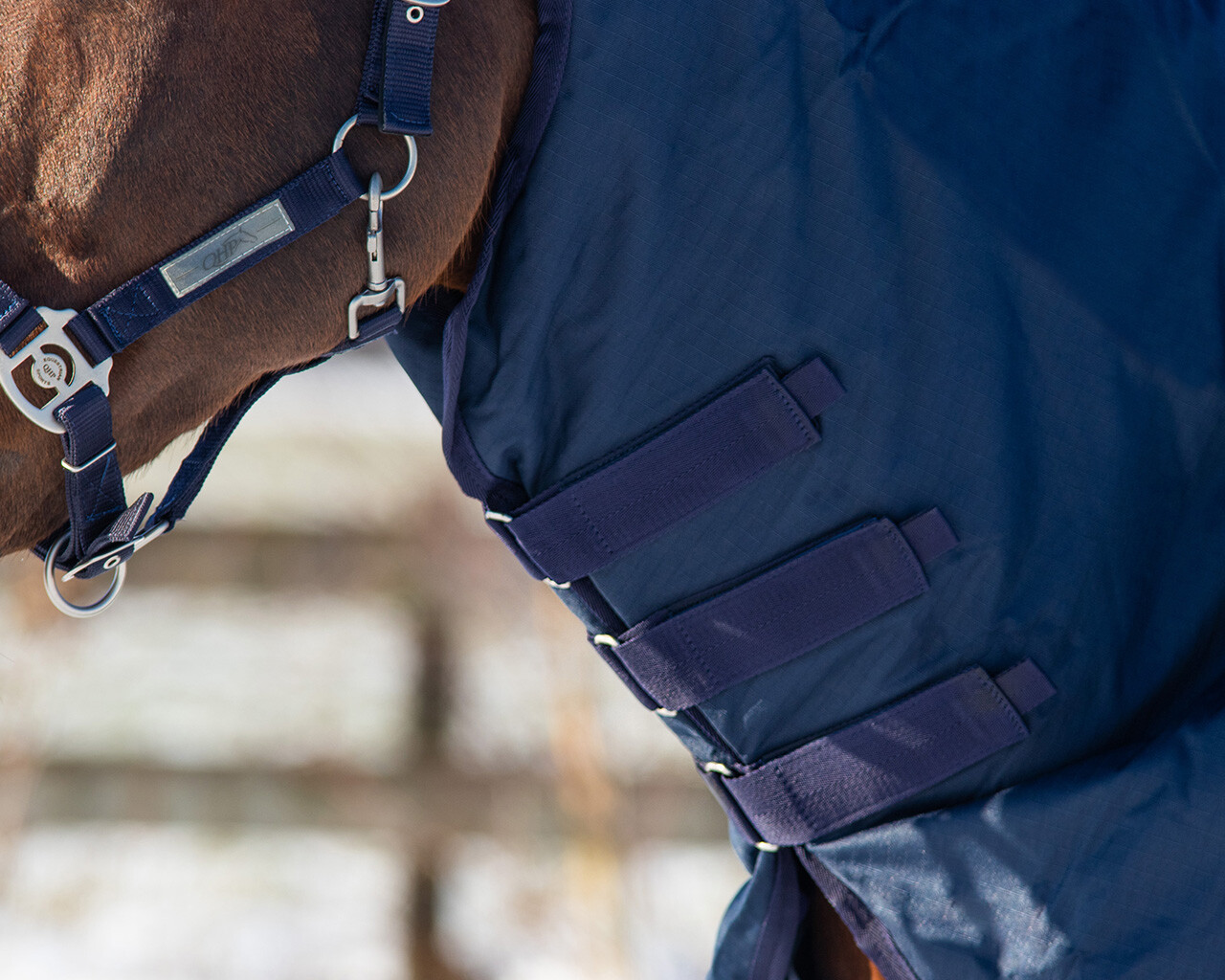 Separate neck cover with 200 g fill. Compatible with turnout rugs that feature D rings at the front. The neck is waterproof and easily attached with three clips.