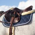 This half pad is filled with memory which shapes itself to the saddle and the horse’s back to provide an optimal fit, better pressure distribution and shock absorption. At the withers and along the rear an artificial fur border is placed. The suedine topside and fleece bottom ensure a stable position between the saddle and saddle pad.