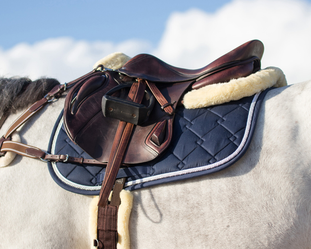 This half pad is filled with memory which shapes itself to the saddle and the horse’s back to provide an optimal fit, better pressure distribution and shock absorption. At the withers and along the rear an artificial fur border is placed. The suedine topside and fleece bottom ensure a stable position between the saddle and saddle pad.