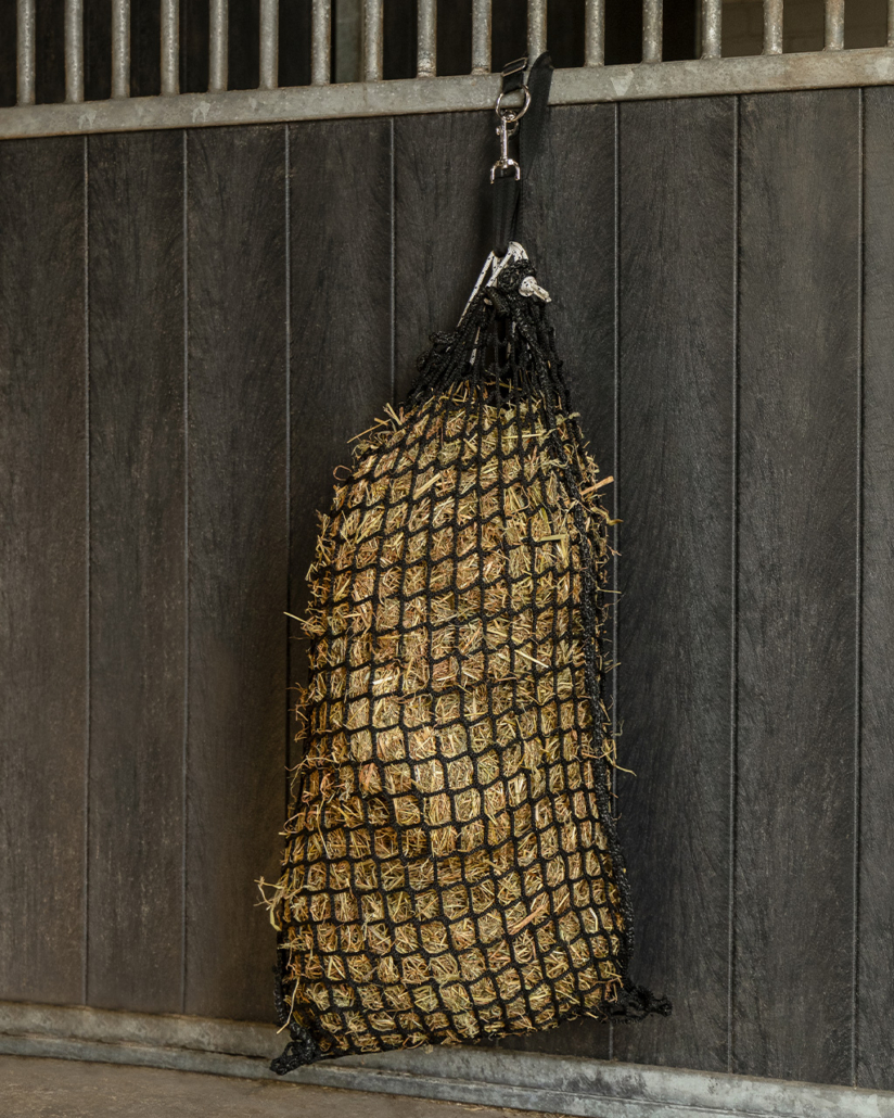 Make things easy with this hanging strap! Easily hang feed buckets, hay nets or bags. Adjustable from 45 cm to 75 cm and a must-have in your tack room!