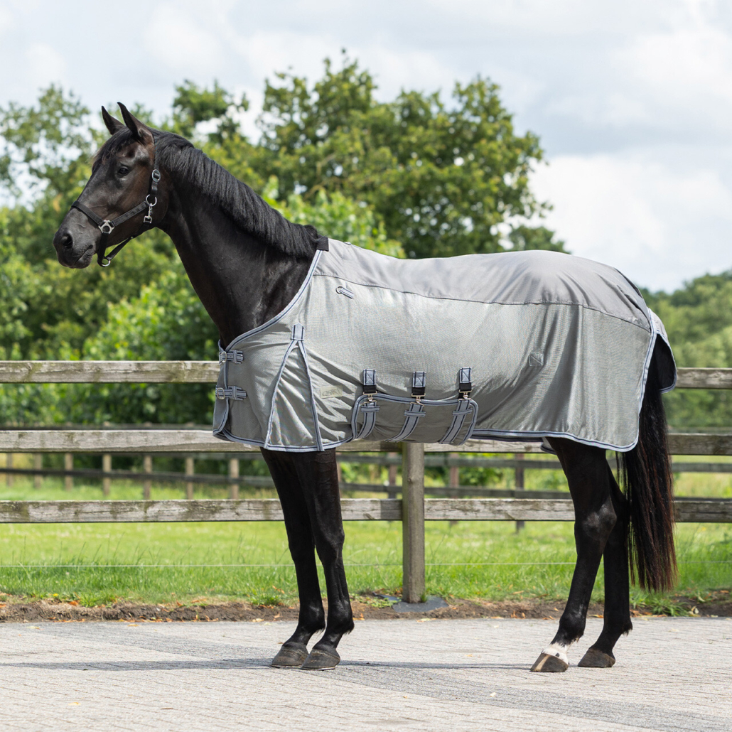 This fly sheet features a waterproof topside which keeps the back and neck of the horse dry when it is raining. In short, a rug which can be used the whole summer season.