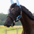 Fly mask with a nose flap which can be detached by means of a Hook-and-loop fastener. The mask itself is made of firm mesh. With lyrca ears for high comfort. The coloured part is made of highly breathable materials.