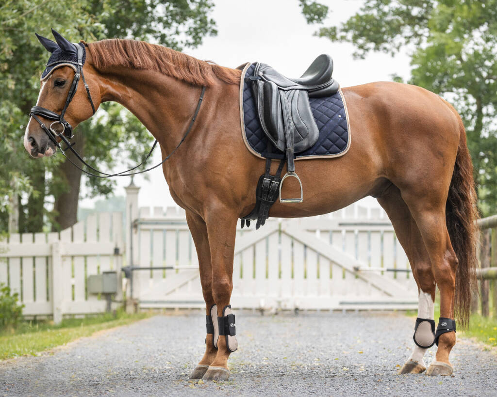Set of two open fetlock boots with a hard shell and neoprene lining. With Hook-and-loop fastener. Protects the horse’s legs against shocks and hits. Available in many colours.