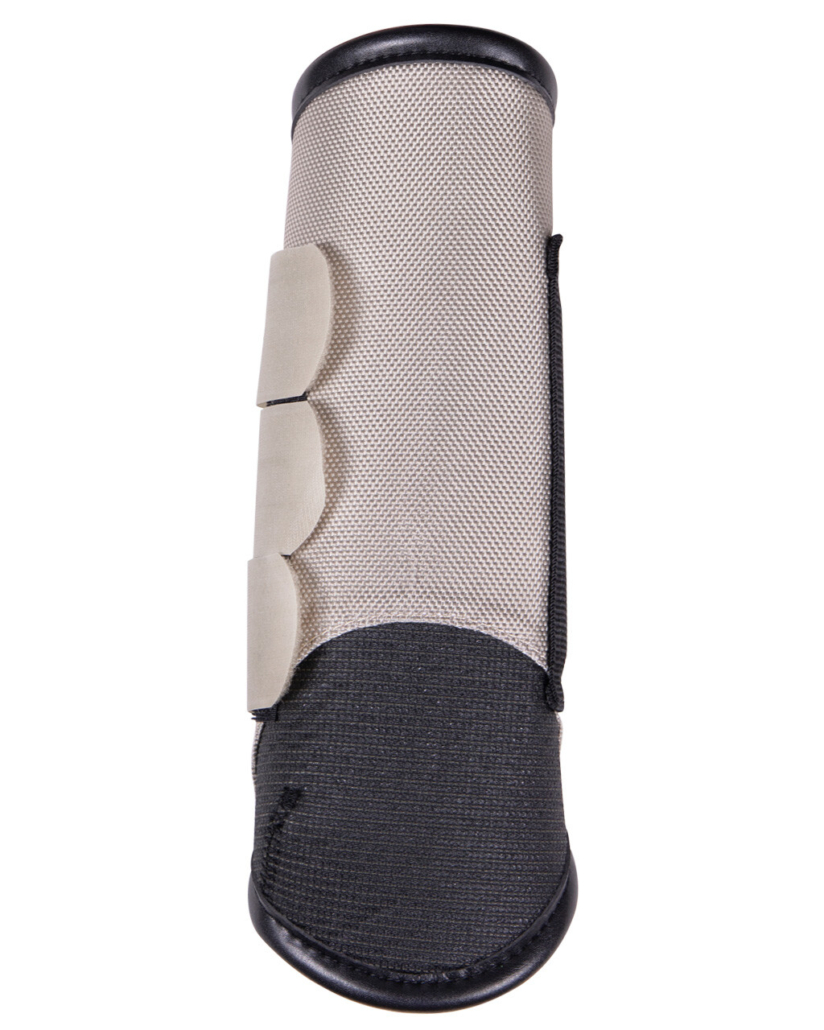 These technical hind leg boots are specially designed for eventing. The dirt repellent boot does not absorb water, provides maximum freedom of movement, and is made from high quality materials. Four polyethylene plates protect the hind leg tendons when hitting obstacles. The rear underside of the boot is made from Kevlar® for extra protection, strength, and durability.