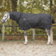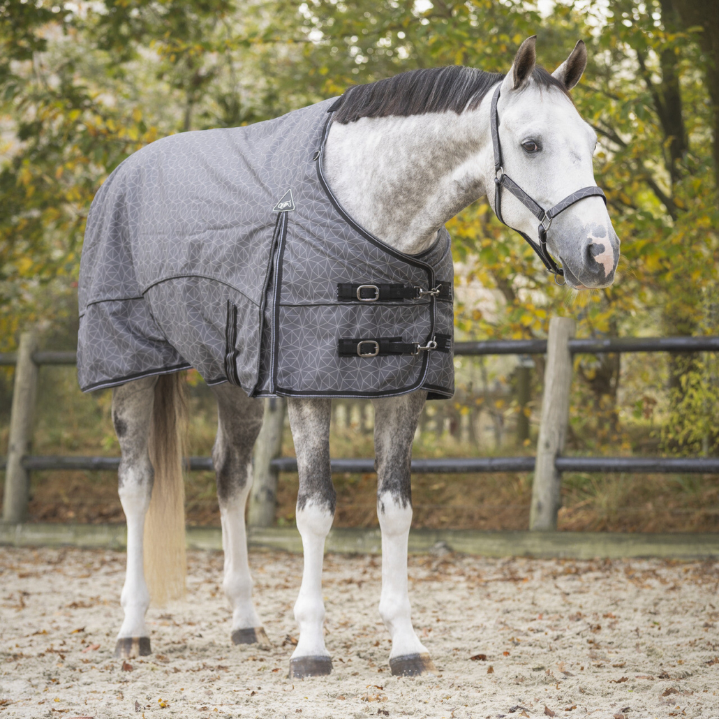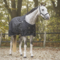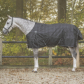 Strong, waterproof and breathable rain rug that keeps a horse warm in windy and cooler temperatures. The rug features a tailored fit at the chest to prevent gaps for horses with a broader chest. A neck cover can be attached to the D-rings at the neck.