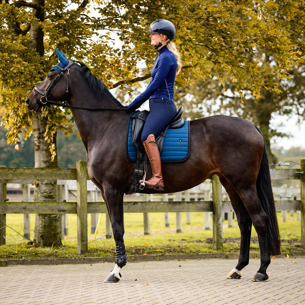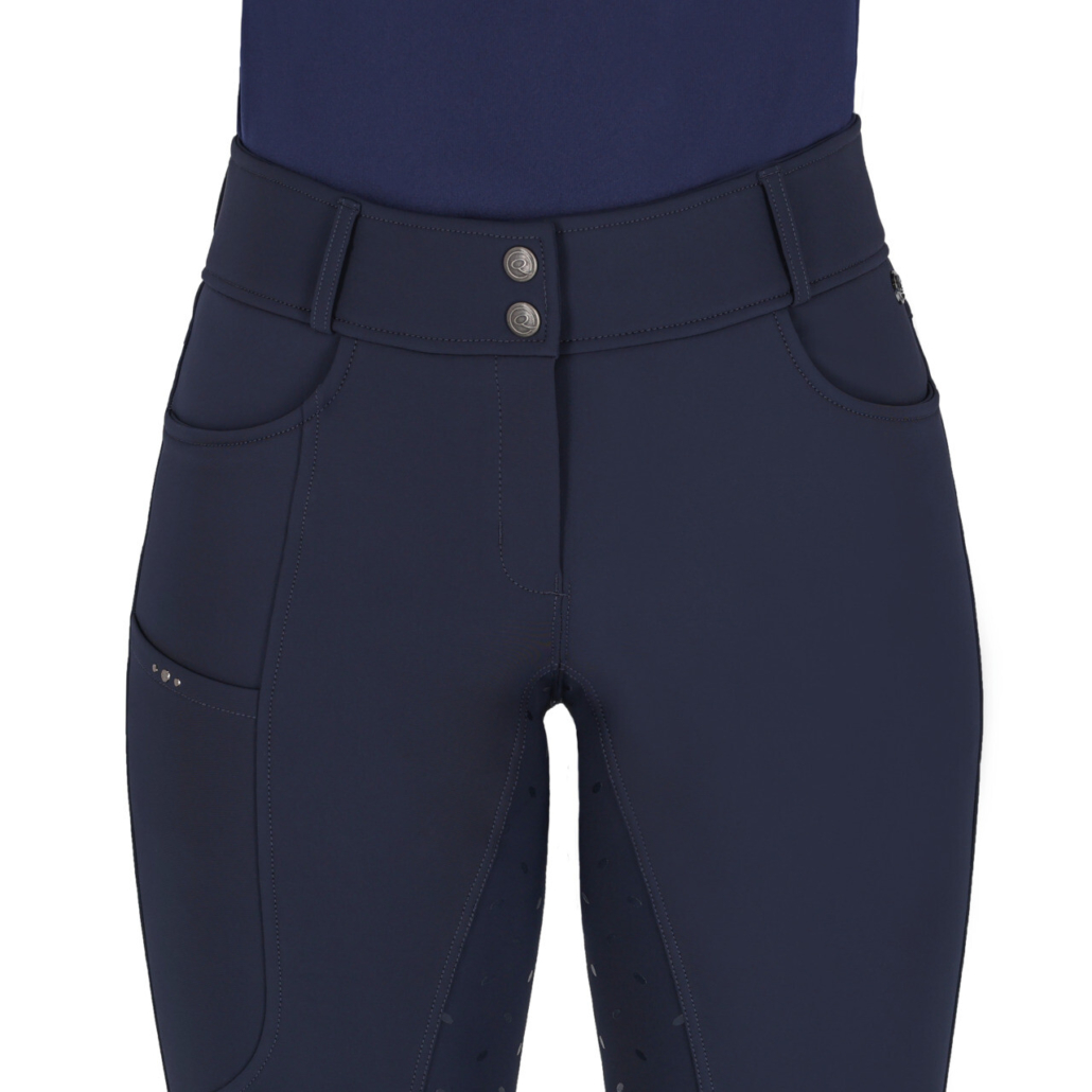 The Lymee riding breeches are made from softshell fabric and feature full seat with medium grip. The brushed interior provides a soft and warm feel, offering good insulation. These water-repellent breeches have two front pockets and an additional pocket with three stones on the right leg for your phone. Furthermore, the breeches are equipped with a Q-pin and elastane flex legs for added comfort.