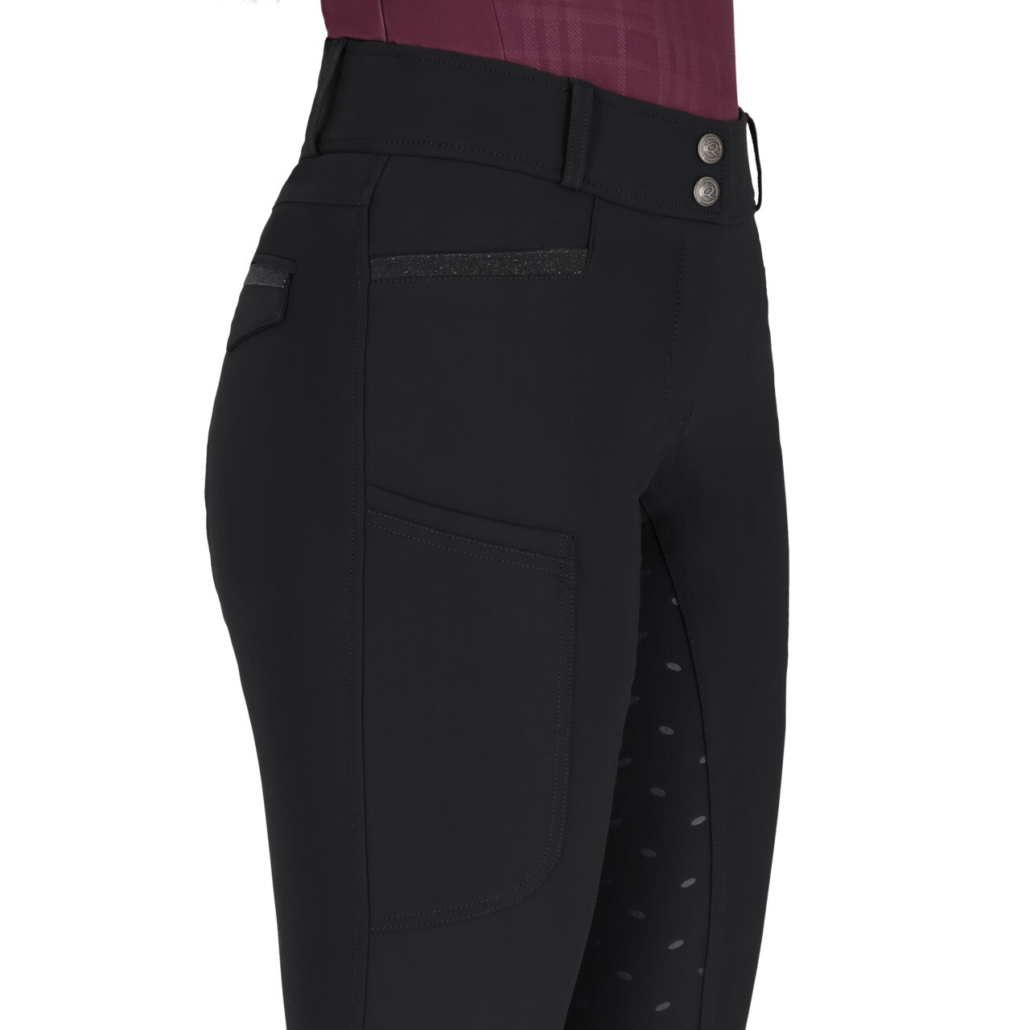 The Zahra riding breeches from the winter collection are breathable, stretchy and feature a high waistband for extra comfort. With excellent shape recovery, they maintain their fit even after frequent use. Equipped with elastic leg closures, full seat with medium grip and practical pockets with glitter trim, these breeches are perfect for any training session.
