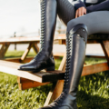 Riding boot Hailey is a real eye-catcher in the ring. The top of the boot is decorated with patent leather and glitter. The decorative lacing provides a striking look, but the zip makes it easy to put on. The elasticated lace, elastic insert and comfortable insole ensure high wearing comfort.
