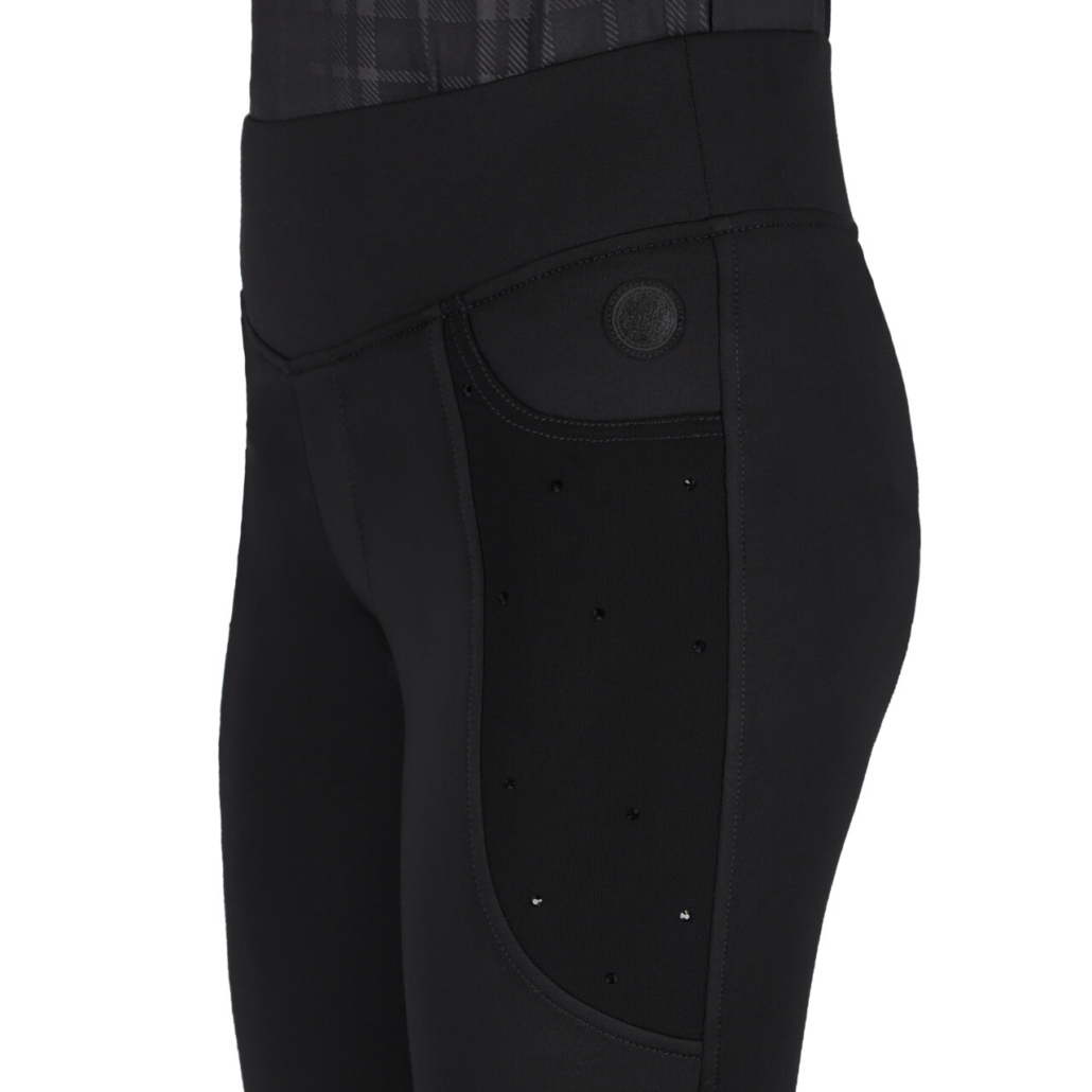The Zahra riding tights from the winter collection are made of 4-way stretch fabric with a soft brushed interior for optimal comfort and warmth. With a high waist and elastic waistband, these tights offer a perfect fit. The medium leg grip features a decorative pattern and the pockets on both thighs are finished with a sheer fabric and rhinestones. A QHP logo on the left side completes the Zahra riding tights.
