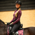 The Zahra base layer is made of breathable and elastic fabric with a soft, brushed interior for added comfort and insulation. The base layer features a concealed half zipper and is adorned with rhinestones around the zipper. It is equipped with a QHP logo on the left arm.