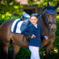 Can you see yourself appearing in this chic competition jacket? Follow the trends and grab your chance. The Kae competition jacket has a subtle print on the pockets and collar. The jacket has a professional look thanks to the split on the back and the luxurious Q-buttons on the front.