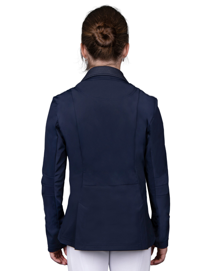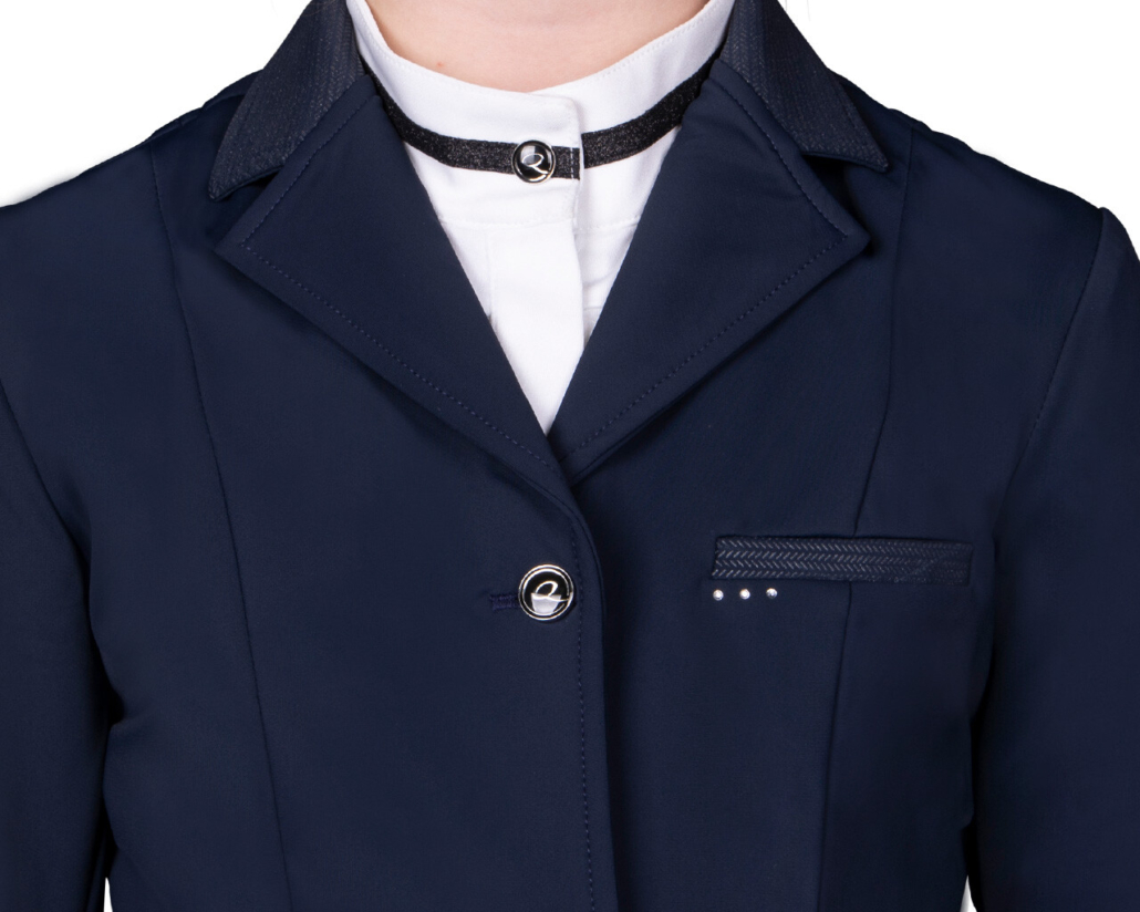 Can you see yourself appearing in this chic competition jacket? Follow the trends and grab your chance. The Kae competition jacket has a subtle print on the pockets and collar. The jacket has a professional look thanks to the split on the back and the luxurious Q-buttons on the front.