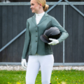 Sporty competition jacket with mesh on the sides, under the sleeves, on the rear and collar. The mesh makes the jacket very breathable and perfect for summer. The jacket features a hidden zipper behind the button closure and two hidden zipper pockets on the front.