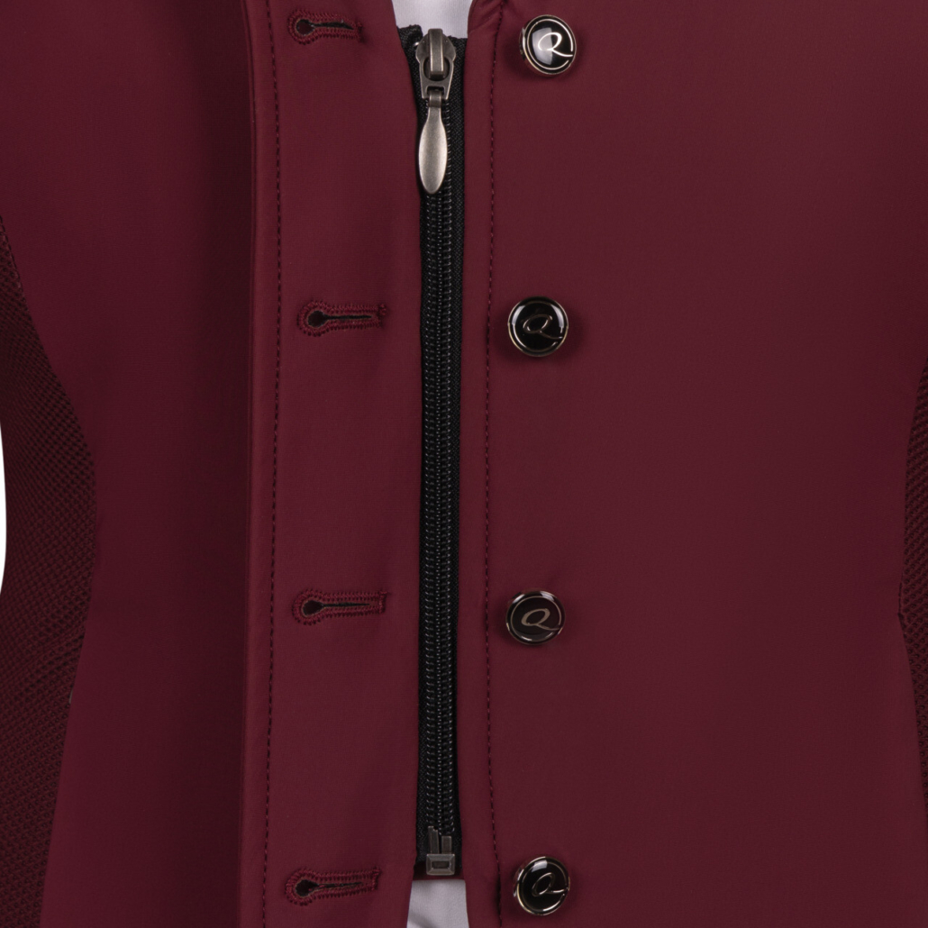Sporty competition jacket with mesh on the sides, under the sleeves, on the rear and collar. The mesh makes the jacket very breathable and perfect for summer. The jacket features a hidden zipper behind the button closure and two hidden zipper pockets on the front.