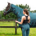 The top is finished with a crystal print and features straps on the back in a contrasting color.