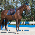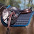 Elegant saddle pad with two decorative cords, a colored border and an anatomically shaped back. The saddle pad is equipped with girth loops and short saddle loops with a Hook-and-loop fastener that ensure that the saddle pad stays in place. The QHP embroidery on the back completes the saddle pad.