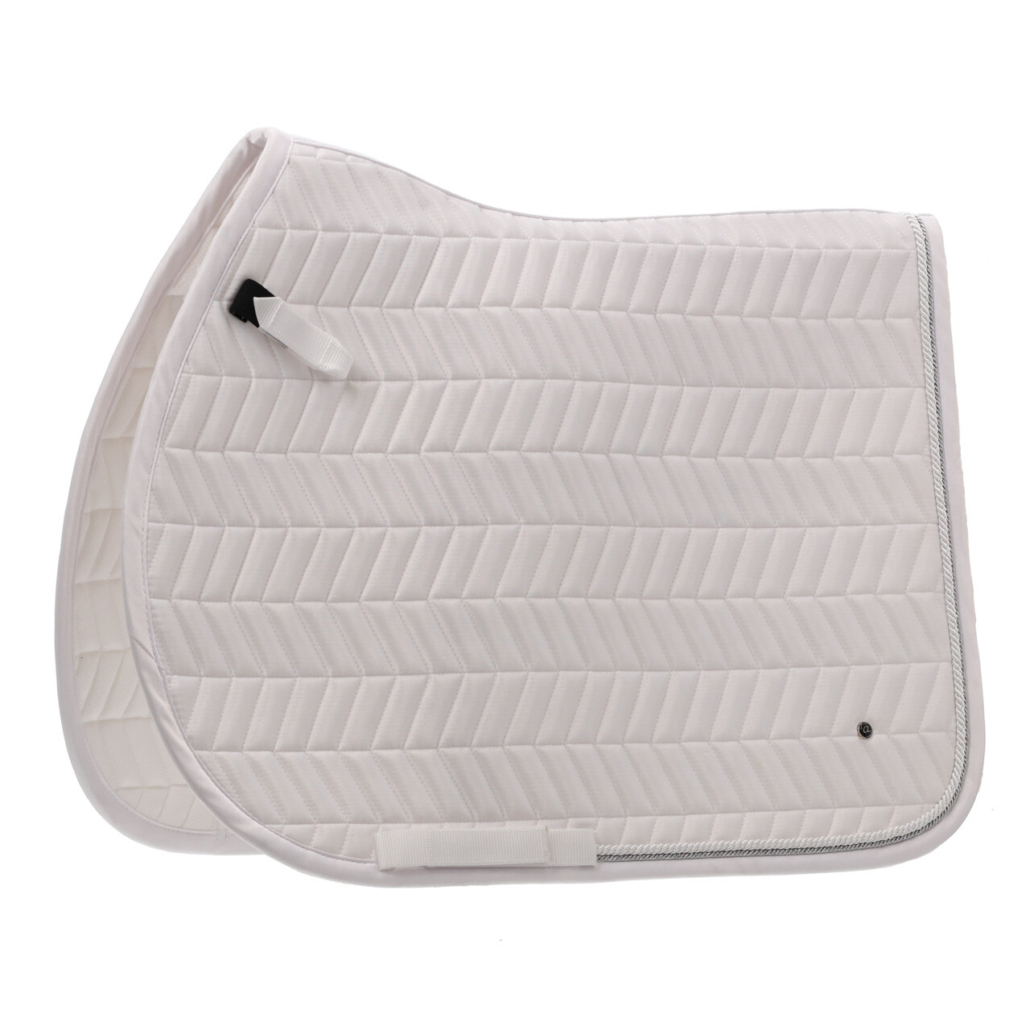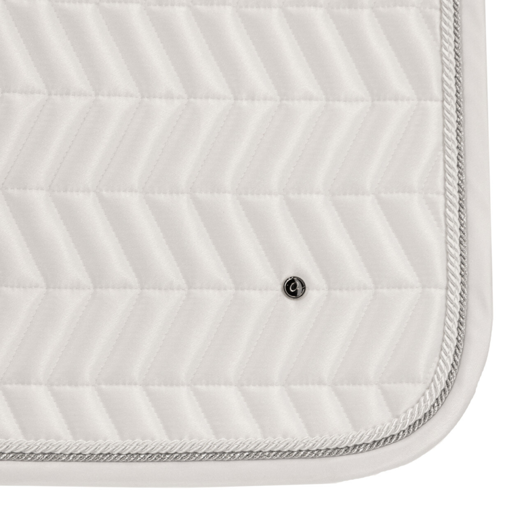 The luxurious Sennah saddle pad from the winter collection features decorative stitching and a two-colored decorative cord at the back. The saddle pad features a Q-pin on the left side and is lined with absorbent mesh to absorb sweat. The girth loops and short D-ring loops with hook-and-loop fasteners ensure that the saddle pad stays in place while riding.