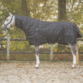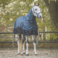 Strong winter rug with 150 gram filling. The rug has a custom fit at the chest which prevents an opening on horses with a wider chest. The rug is also waterproof and breathable. The neck can be easily attached with clips to three D-rings on the rug.