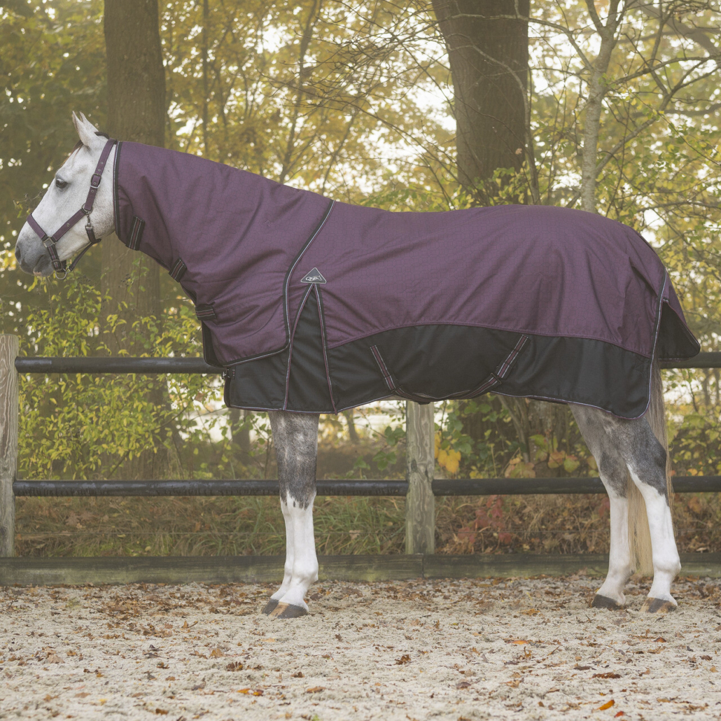 Strong winter rug with 150 gram filling. The rug has a custom fit at the chest which prevents an opening on horses with a wider chest. The rug is also waterproof and breathable. The neck can be easily attached with clips to three D-rings on the rug.