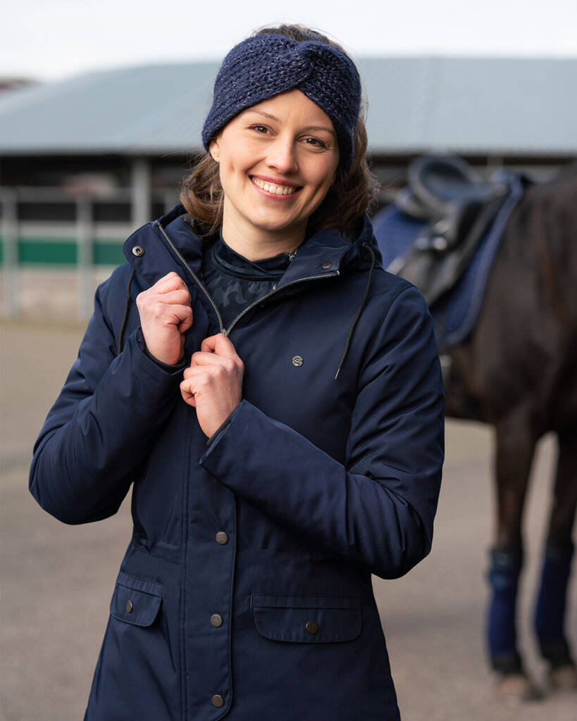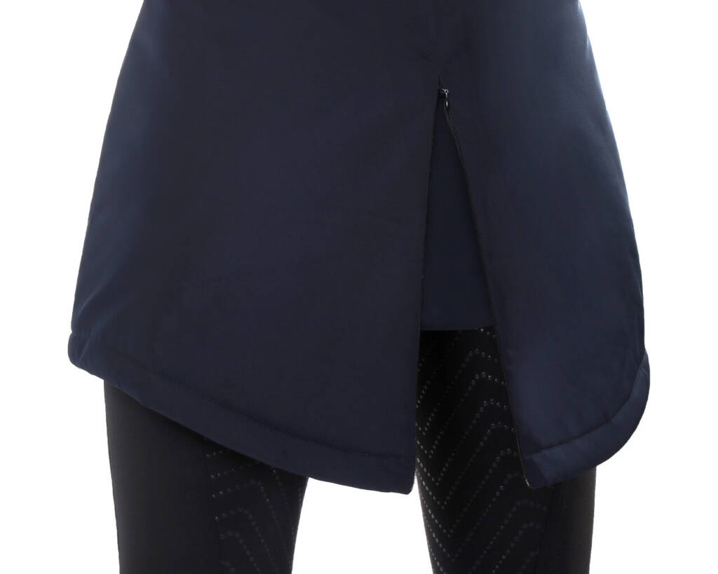 With this long quilted jacket, you can face the cold winter days with ease. The back has a zip so you can unzip it when you get on the horse. The jacket always fits nicely because of the drawstring at the waist, has an elastic sleeve closure and the hood can be fastened while riding.